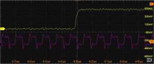 なんか波形がブレているというか、ジッター多めなのが気になりますが・・・タイミング的にはOKですね。