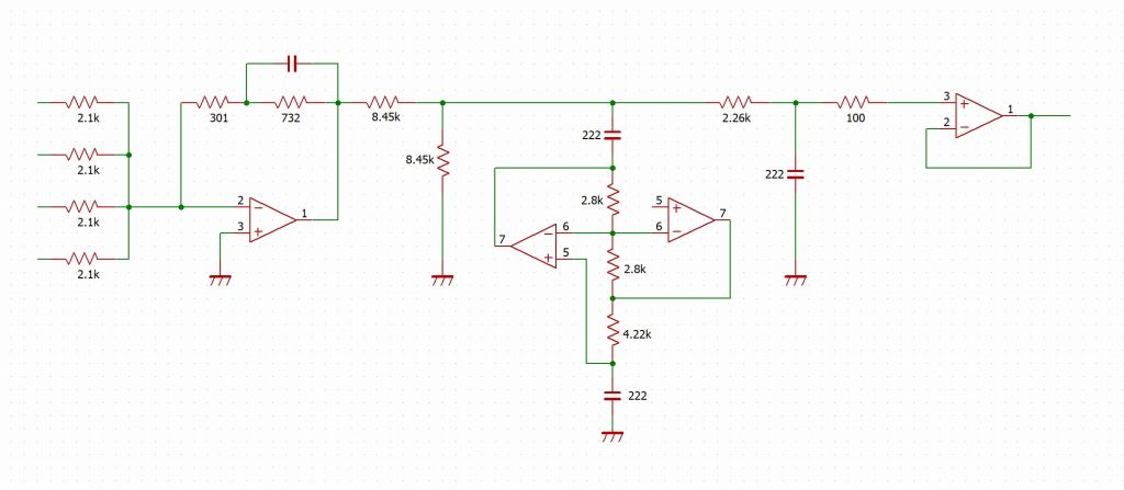 4つのPCM1700Uを電圧加算してGICフィルタ+バッファリングして出力というシンプルな構成です。